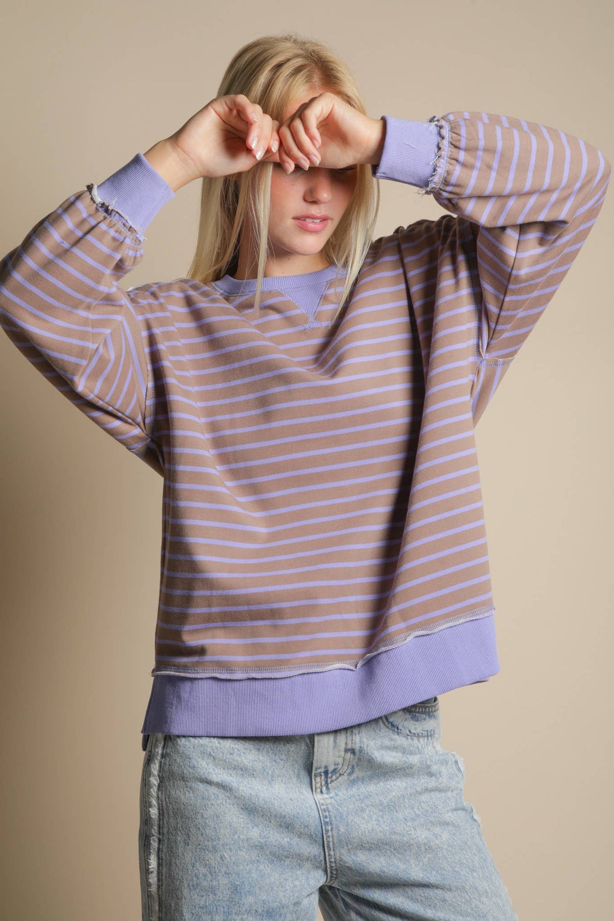 - Stripe Comfy Casual Oversized Knit Top