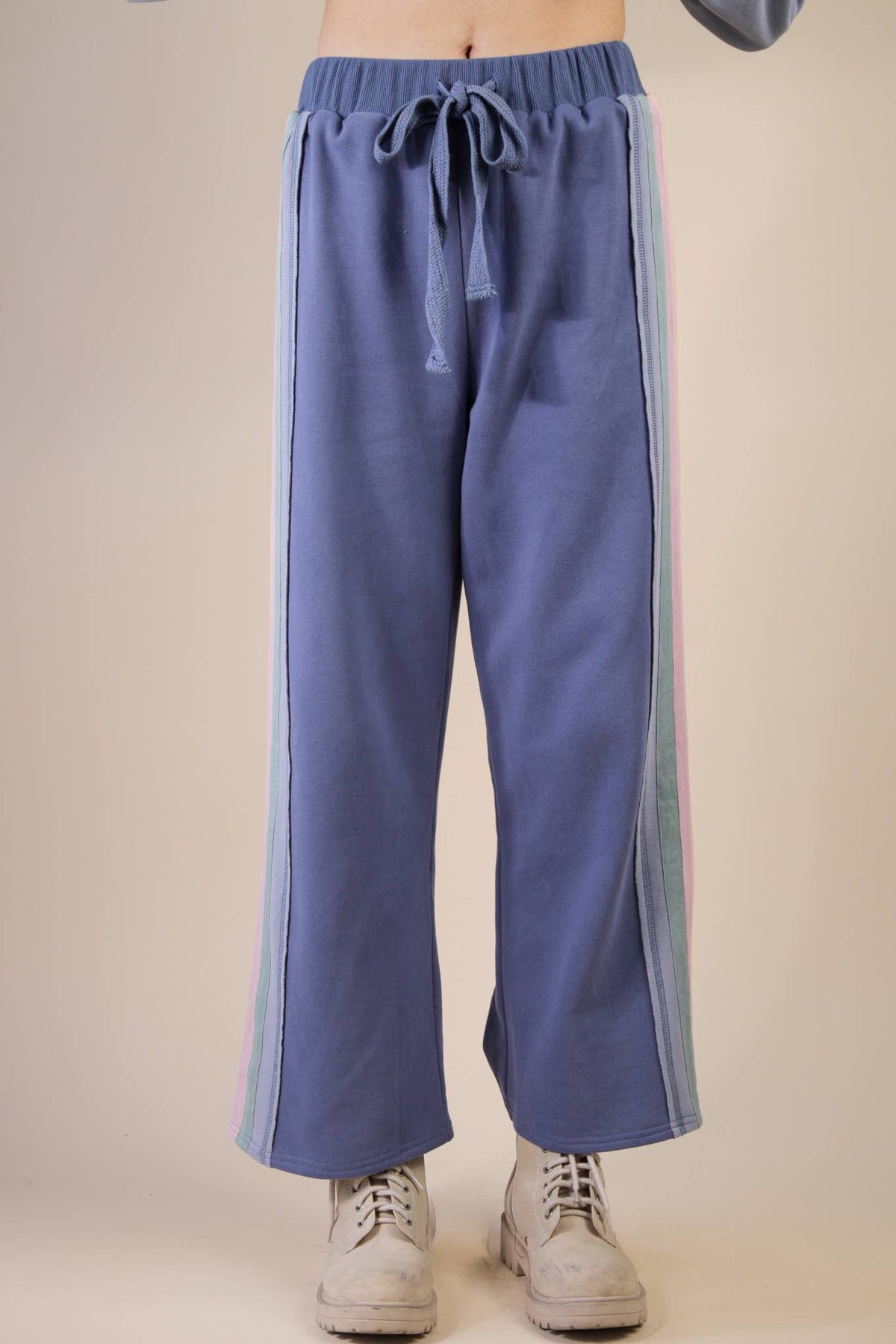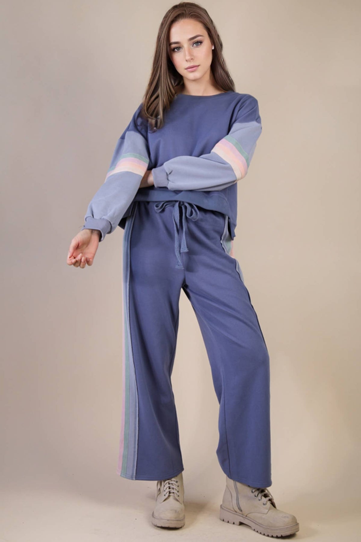 NT12360SET-Color Tape Detail Knit Top & Pants Comfy Set: DENIM / S-M-L/2-2-2-Anatomy Clothing Boutique in Brenham, Texas