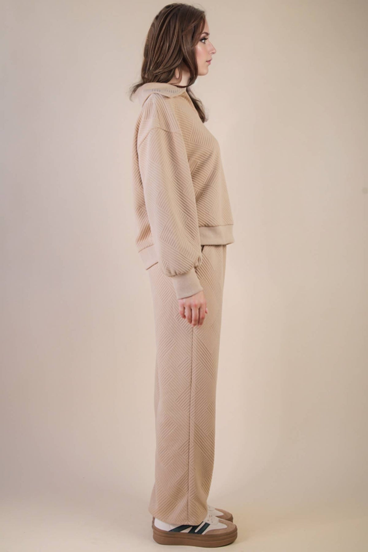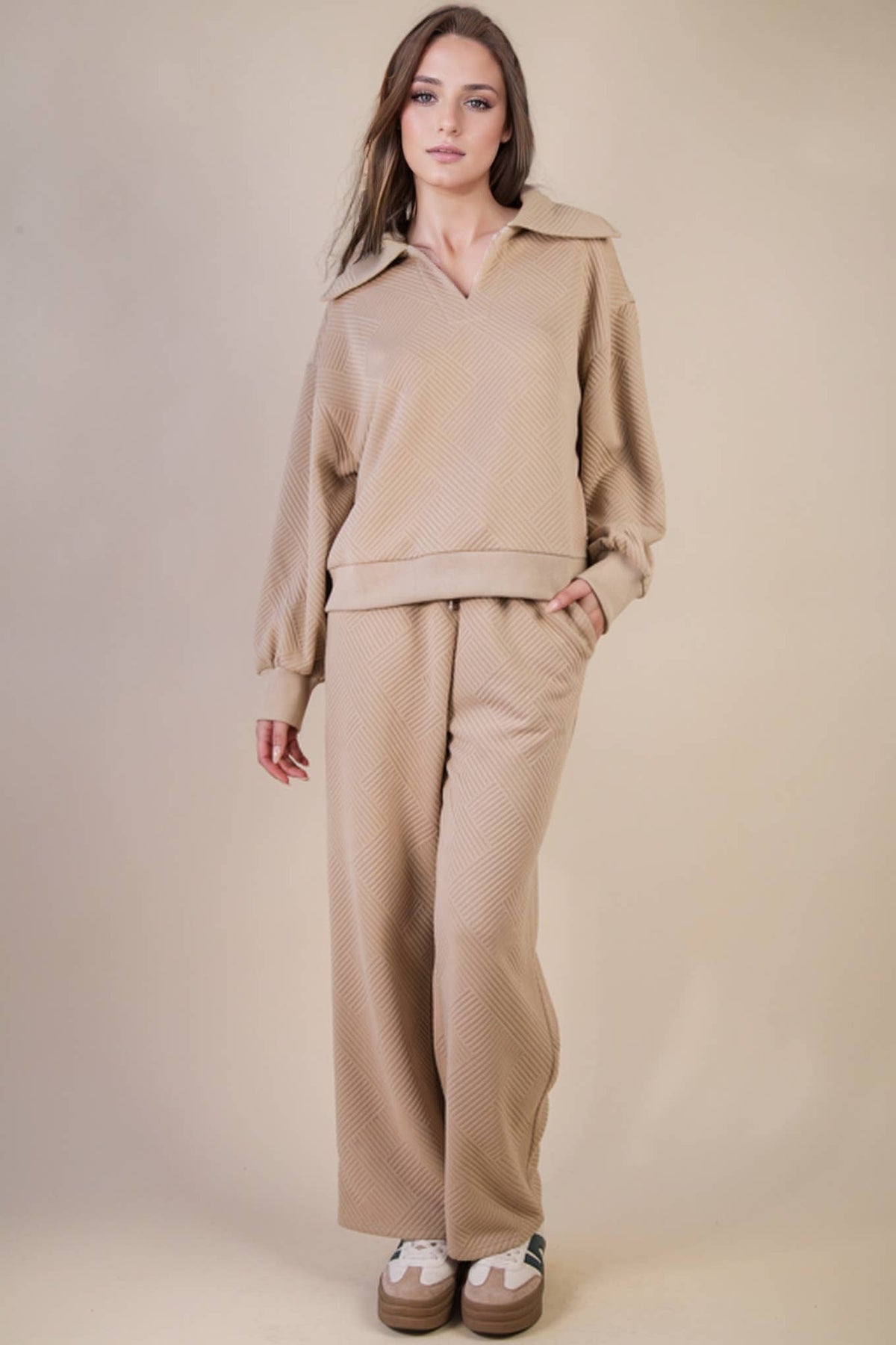 - Textured Knit Casual Comfy Top & Pants Set