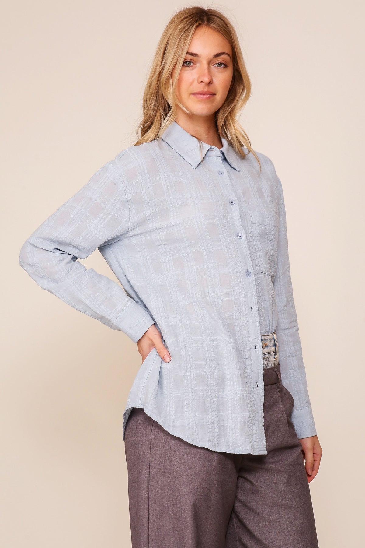 Women’s Textured Button Down Shirt – Long Sleeve Collared Blouse