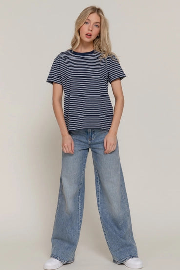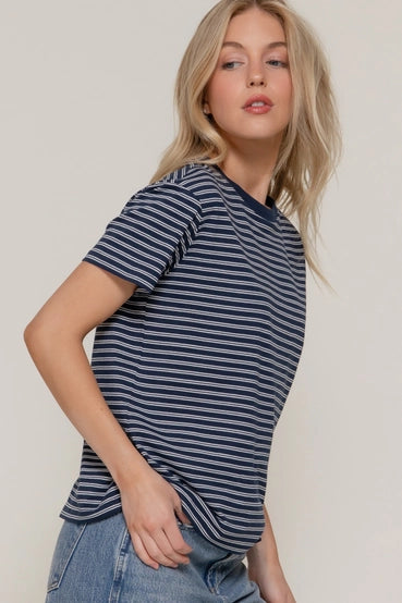 Women’s Striped Cotton Tee – Short Sleeve Round Neck
